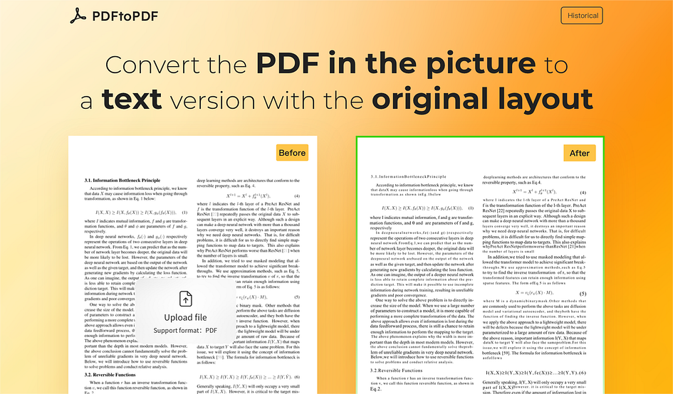 pdftopdf.ai is a revolutionary online PDF conversion tool designed for users who need to maintain the original document format and quality. Using OCR technology, pdftopdf.ai can accurately recognize and convert scanned PDF documents, even complex layouts can be processed accurately. Our conversion engine ensures that the text, images, charts, and layouts in PDF remain unchanged after conversion to Word documents, avoiding common format loss and skipping problems in traditional conversion methods. It also supports batch conversion, allowing users to process multiple files at once, greatly improving work efficiency.